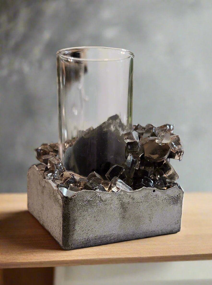 Discover the beauty of nature and art combined with our handcrafted Lacuna Propagation Jars! Each jar is uniquely created using mortar, fire glass and the art of empty space. Ensuring that no two pieces are alike each one is made by hand by Brittany and Shane Juhl. These exceptional jars serve not only as a functional tool for propagating your favorite plant clippings but also as a striking decorative element for your home.